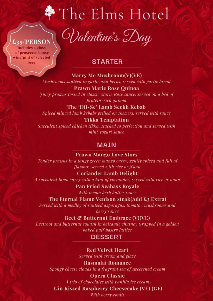 Celebrate love in style this Valentine’s Day at The Elms Hotel, Retford, Nottinghamshire, the perfect destination for a romantic getaway and unforgettable dining experience. Our specially curated Valentine’s Day celebration features an elegant candlelight dinner, a romantic ambience, thoughtfully designed couple experiences, and premium hospitality that makes every moment special. Whether you’re planning a Valentine’s dinner date, a couple staycation, or a luxury romantic escape, The Elms Hotel, Retford, Nottinghamshire offers the ideal setting with exquisite cuisine, warm service, and beautifully decorated spaces to create lasting memories. Book your Valentine’s Day celebration with us and make February 14th truly magical with romance, comfort, and unforgettable moments at one of the best hotels for Valentine’s Day celebrations.